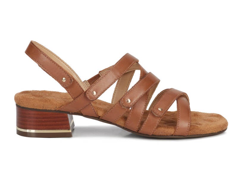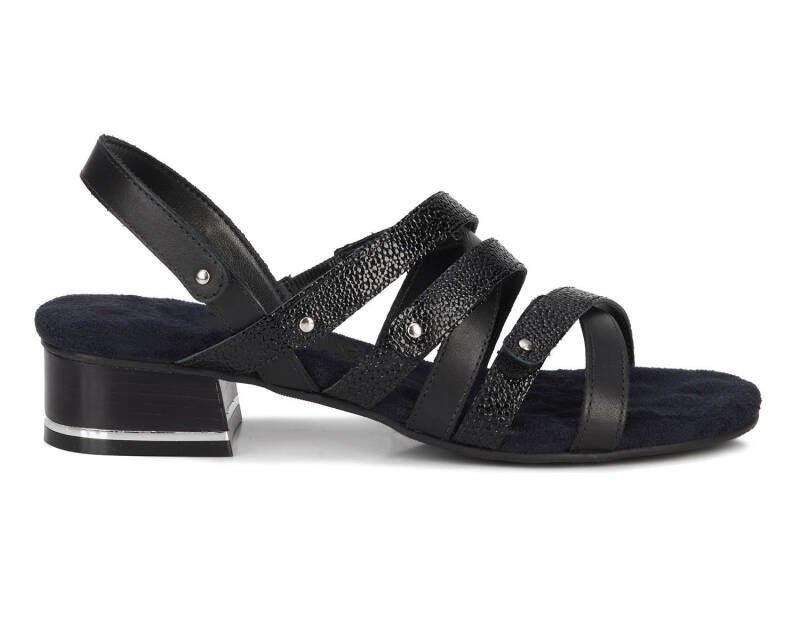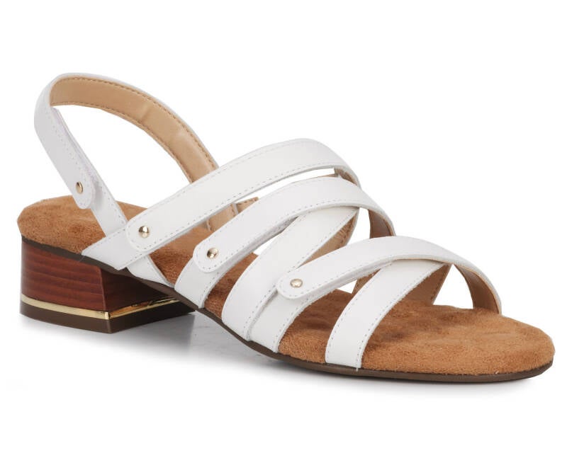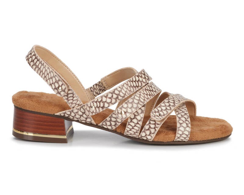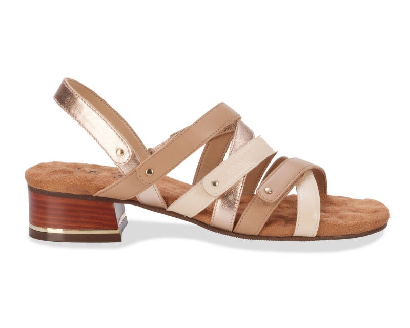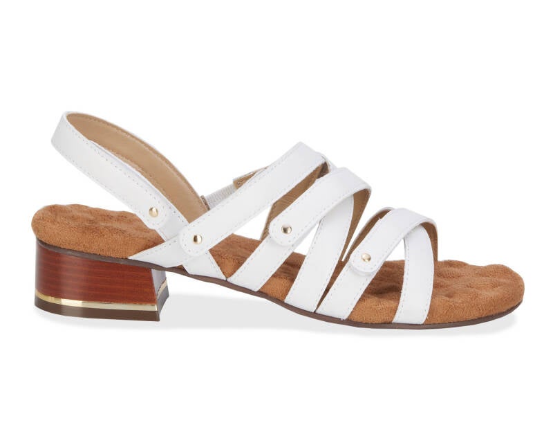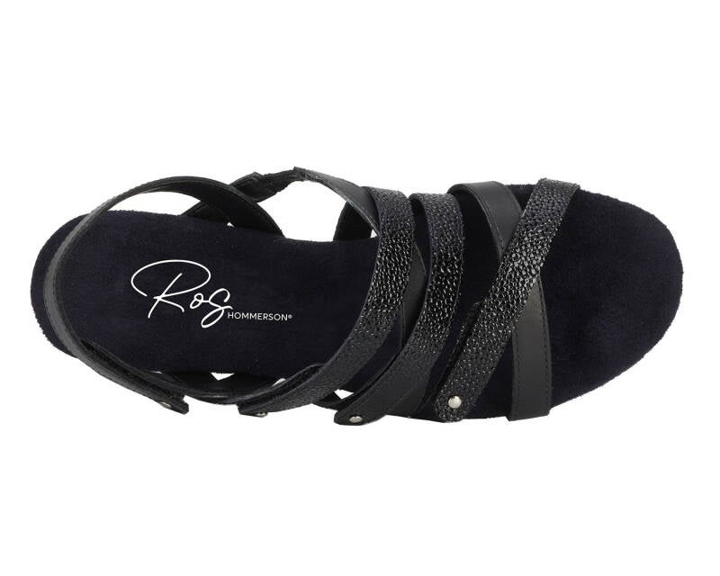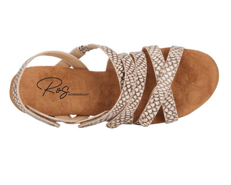 Comfort, adjustability and pizzazz all in one! Breeze into summer with this strappy sandal from Ros that includes four completely adjustable hook and loop closure straps, one discreetly elasticized strap, and set off with metallic nail heads and heel detail. Signature Tiny Pillows insoles are both cushioned and pillowy with moderate arch support, making every step a dream!