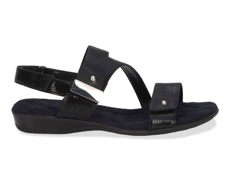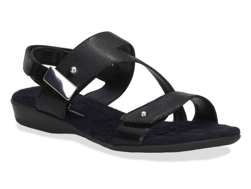 Fashion, fit and feel – Chloe really does have it all! All three straps are completely adjustable by hidden hook and loop closures. Lovely metallic details add flair to this supportive yet flattering sandal. Our signature Tiny Pillows footbeds provide extreme cushioning with moderate arch support. A stacked look 1” wedge heel on a unit bottom is the perfect height for you to walk all day!