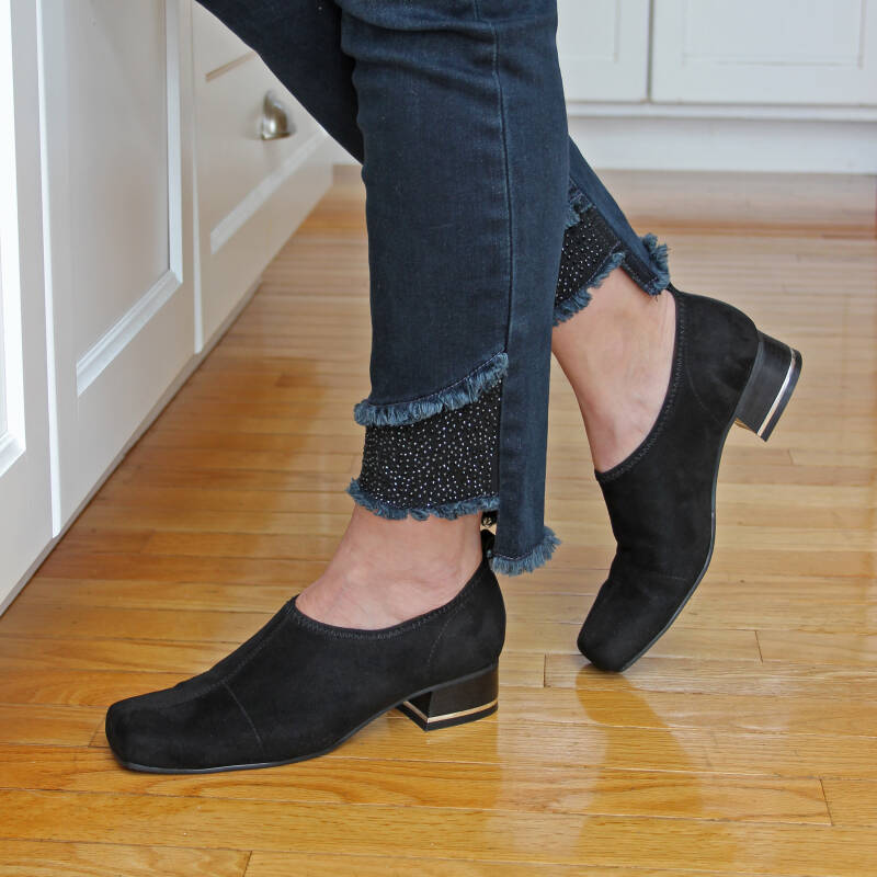 You’ll never sacrifice comfort or style with Esther by Ros! Made from soft stretch suede, Esther fits like a glove. An on-trend squared toe provides plenty of toe room. Inside you’ll find our signature cushioned Tiny Pillows insoles and soft, knit linings. Set on a 1 3/8” heel, Esther will keep you walking comfortably and stylishly all day long!