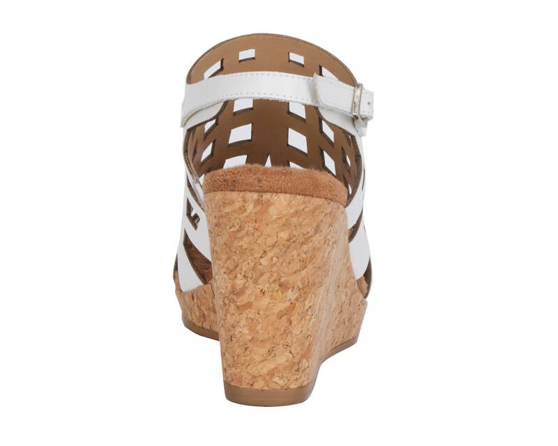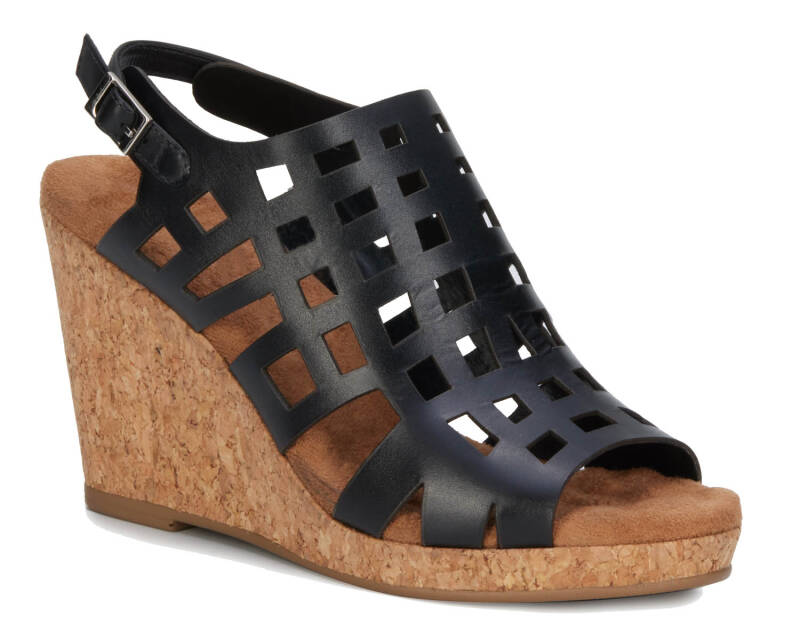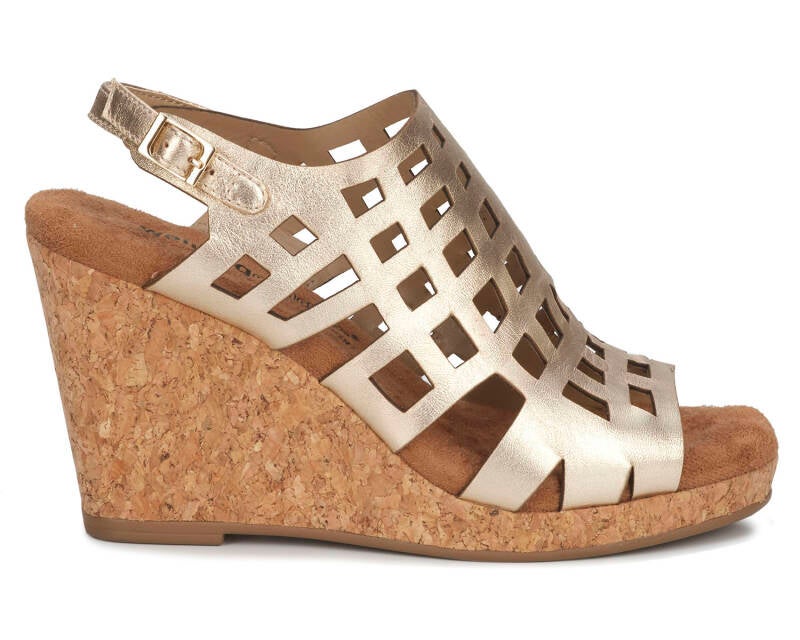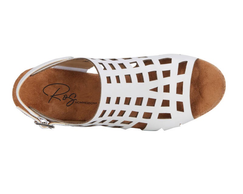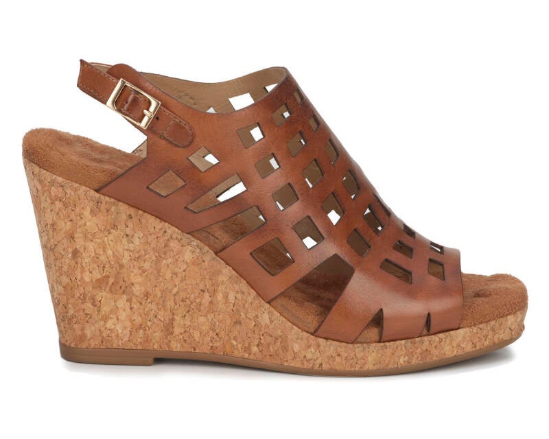 The Kennedy wedge sandal by Ros proves that higher heels can still be comfortable! Kennedy is made with cutout leather uppers and an adjustable heel strap. The cork covered 3 1/2” wedge heel is offset with a 1/2” platform. A super cushioned, pillowy footbed and moderate arch support provide comfort to every step! Worn with denim jeans or a flowy dress, Kennedy will be your go-to sandal!