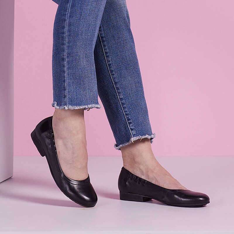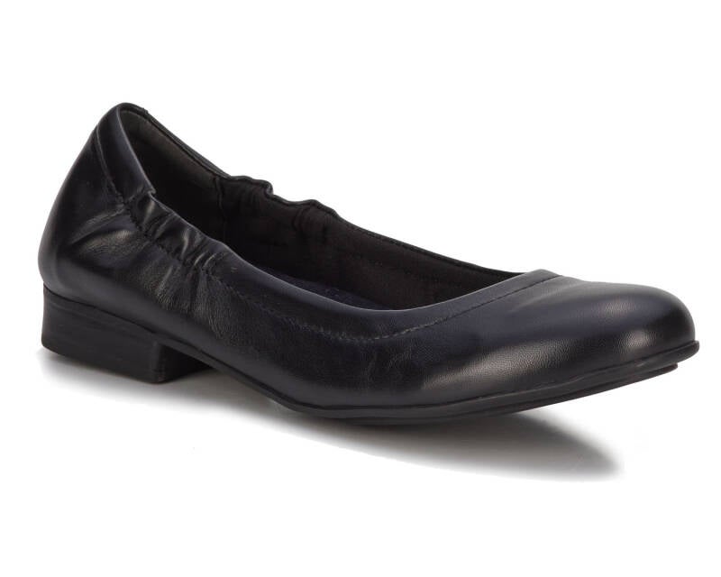 Treat your feet to the super-soft cushioning, roomy toe box and elasticized topline of the Tess flat by Ros. Our signature cushioned Tiny Pillows insoles have moderate arch support and help absorb shock while on your feet, but are also removable to accommodate an orthotic. The 3/4” stacked heel is perfect for walking all day!